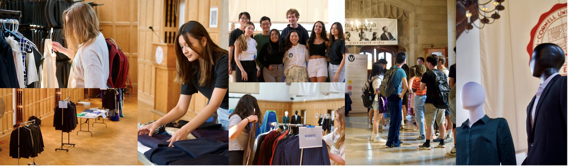 We offer a free professional clothing rental service for students at Cornell. The rental service allows students to rent a diverse array of professional clothing, including but not limited to dress shirts, suit sets, blazers, blouses, ties, and dress shoes, in all sizes. We also host semesterly pop-up shop events, in which we distribute old inventory to the entire student body for free. With this two-fold approach, we serve all students at Cornell who are in need of professional clothing.