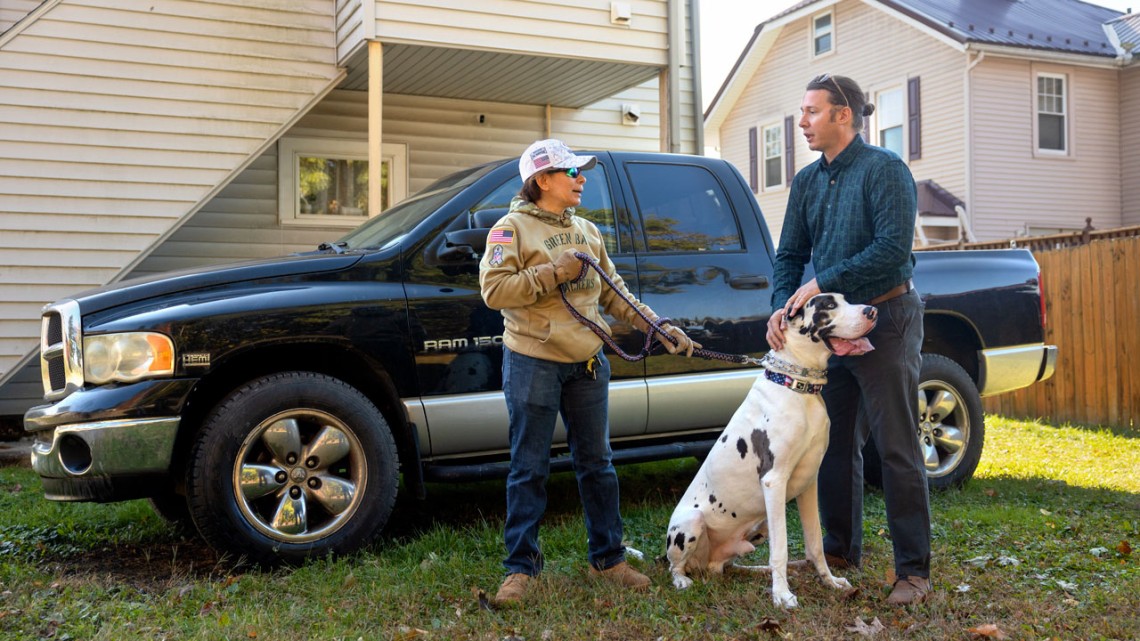 Army veteran Ana Chan (left) relies on her Great Dane, named Rodgers, for companionship, routine and physical support. Jimmy Hardwick (right), supervising attorney of the Veterans Law Practicum, was part of a team of attorneys and students that fought to save Rodgers after a court deemed him a dangerous dog and sentenced him to be euthanized.