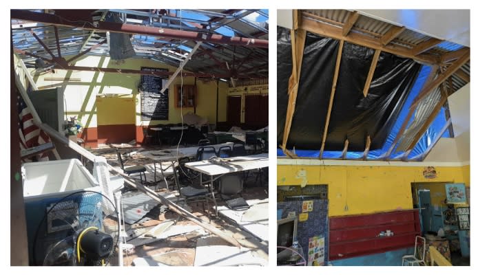 As pictured above, important community structures, including the Community Center (left) and Early Childhood Institute (right), have suffered catastrophic damage. As families begin to rebuild their homes, these centers are being used temporarily to meet urgent needs such as providing school classes and a makeshift health clinic.